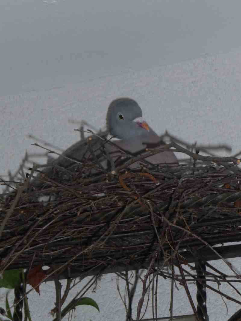 Mais 2 jours apres que j'ai installé la cabane, 2 pigeons ont commencer a faire un nid sur mon balcon.